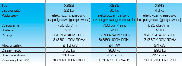 Pralnicowirówki serii XS, programowane - wysokoobrotowe, wymagające kotwiczenia |